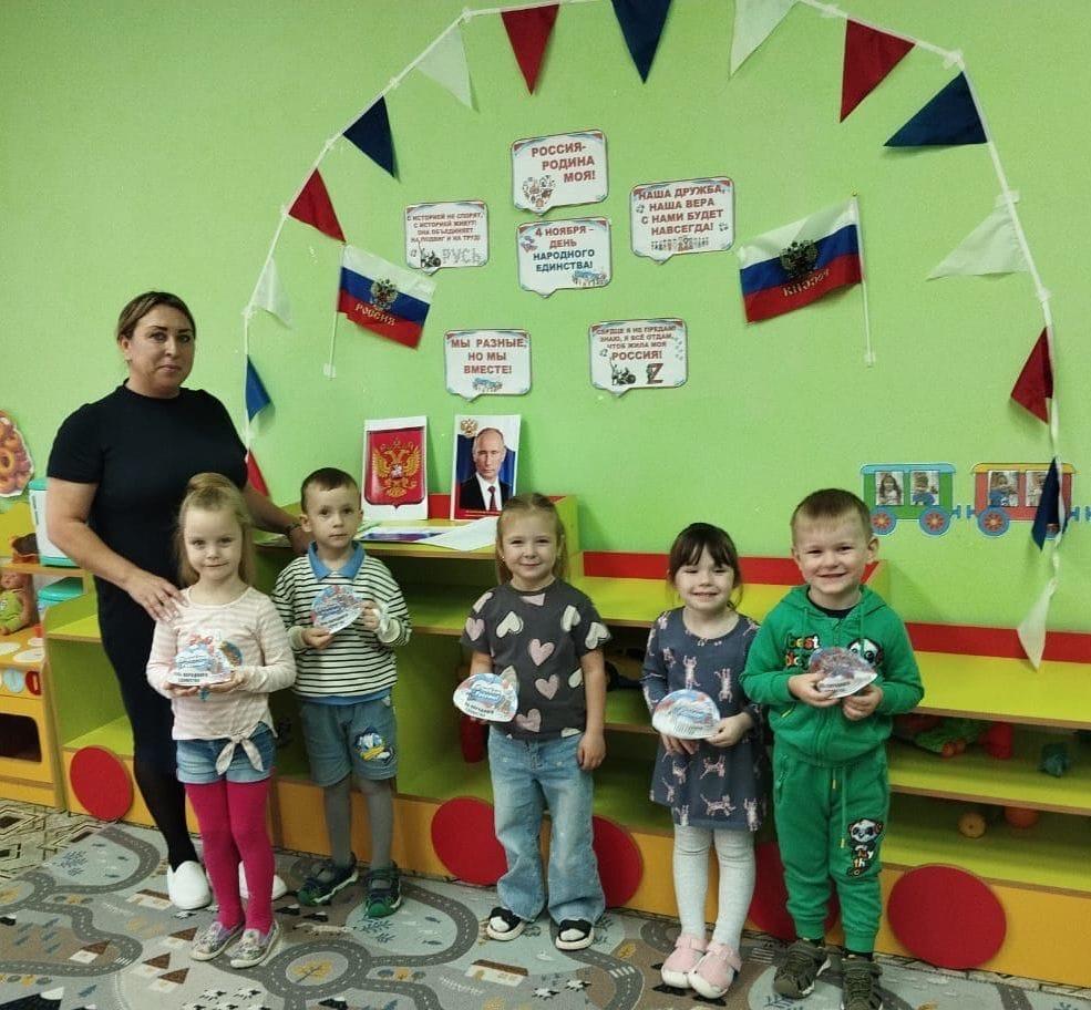 В преддверии празднования Дня народного единства в нашей группе «Непоседы» прошло тематическое мероприятие, направленное на патриотическое воспитание дошкольников. Так с дошколятами был проведен познавательный час «Россия - Родина моя», где ребята познакомились с историей возникновения праздника, а также закрепили знания о государственных и неофициальных символах России. Ребята познакомились с народами, населяющими нашу страну, их национальными костюмами и обычаями.